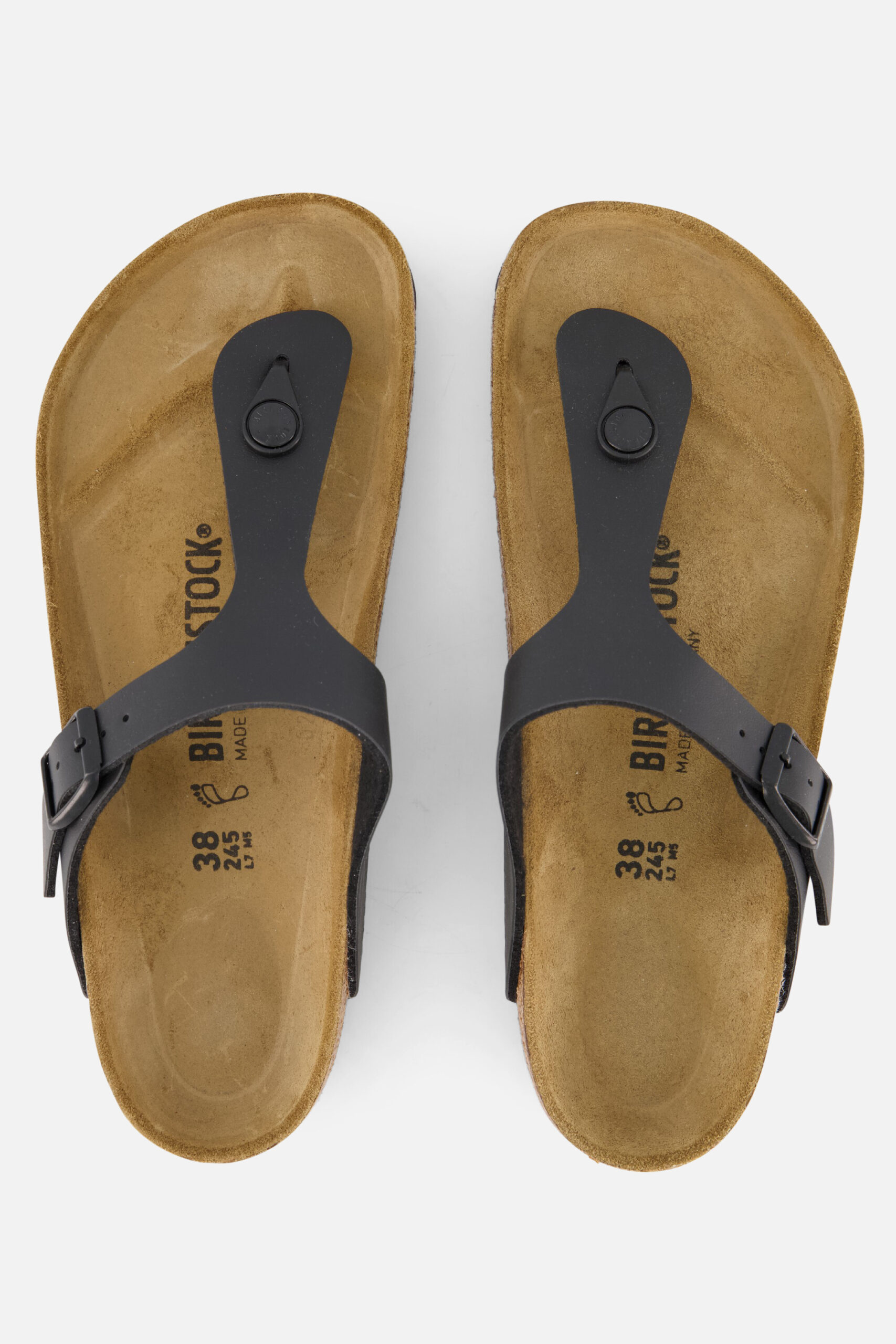 De zwarte Birkenstock Gizeh Core slippers zijn moderne slippers met een verstelbare riem. De Birkenstock slippers zijn gemaakt van imitatieleer en hebben een comfortabel voetbed gemaakt van suède met daaronder een kurklaag. Het unieke voetbed volgt de natuurlijke vorm van de voet en creëert daardoor ondersteuning en optimaal comfort. De slippers hebben een flexibele rubberen EVA zool die demping en schokabsorptie biedt. De pasvorm van de Birkenstock Gizeh Core slippers is normaal tot breed.