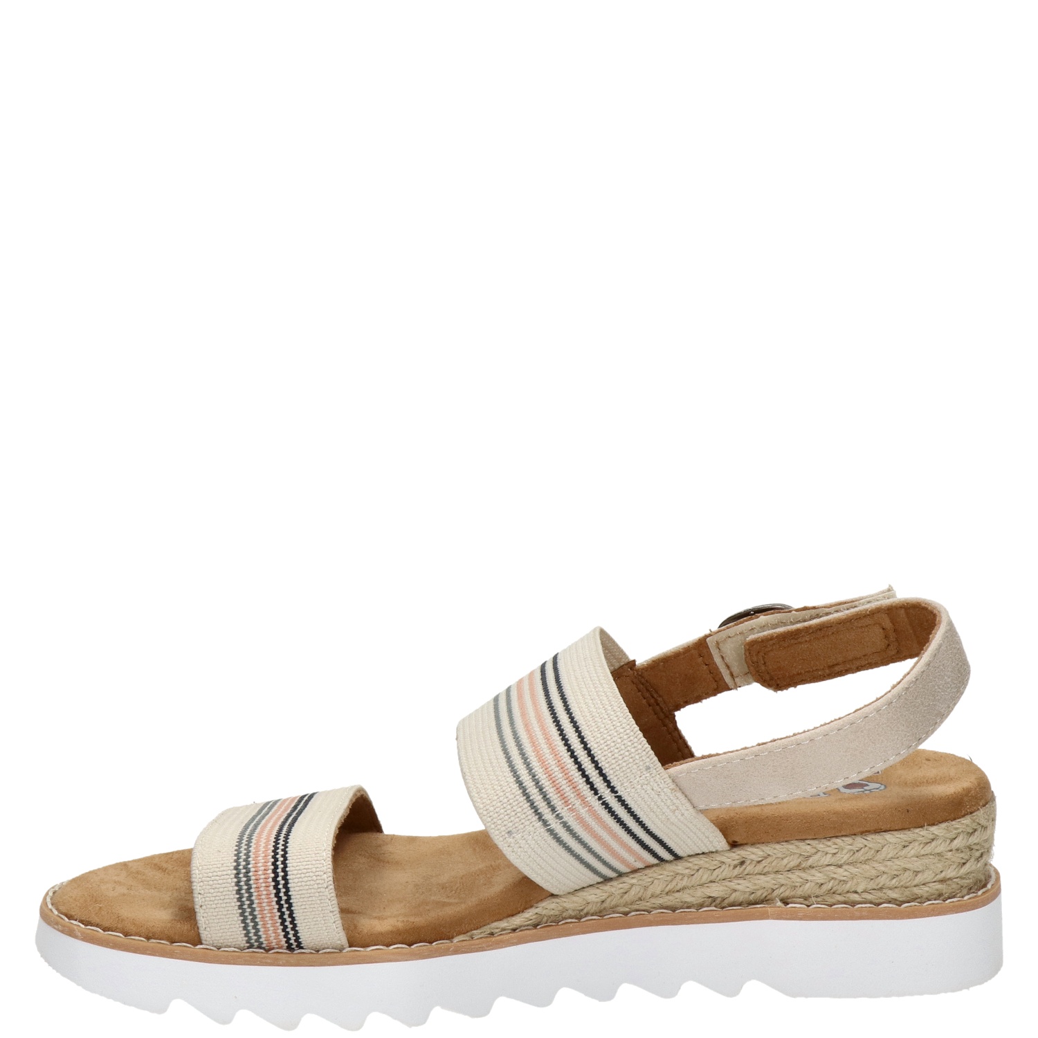 Bobs Desert Kiss dames sandaal Loop er comfortabel en trendy bij op de warme zomerse dagen met deze hippe sandalen van Bobs! Gemaakt van 100% veganistische materialen, met kunstleren bandjes die verstelbaar zijn. De binnenvoering van de bandjes is uitgevoerd in een zacht materiaal van textiel voor extra comfort. Voorzien van een heerlijk zacht en comfortabel Memory Foam voetbed. Het voetbed vormt zich naar de voet en biedt demping gedurende de hele dag. Bevat een rubberen buitenzool met een grof profiel, de zool biedt flexibiliteit en grip tijdens het lopen.