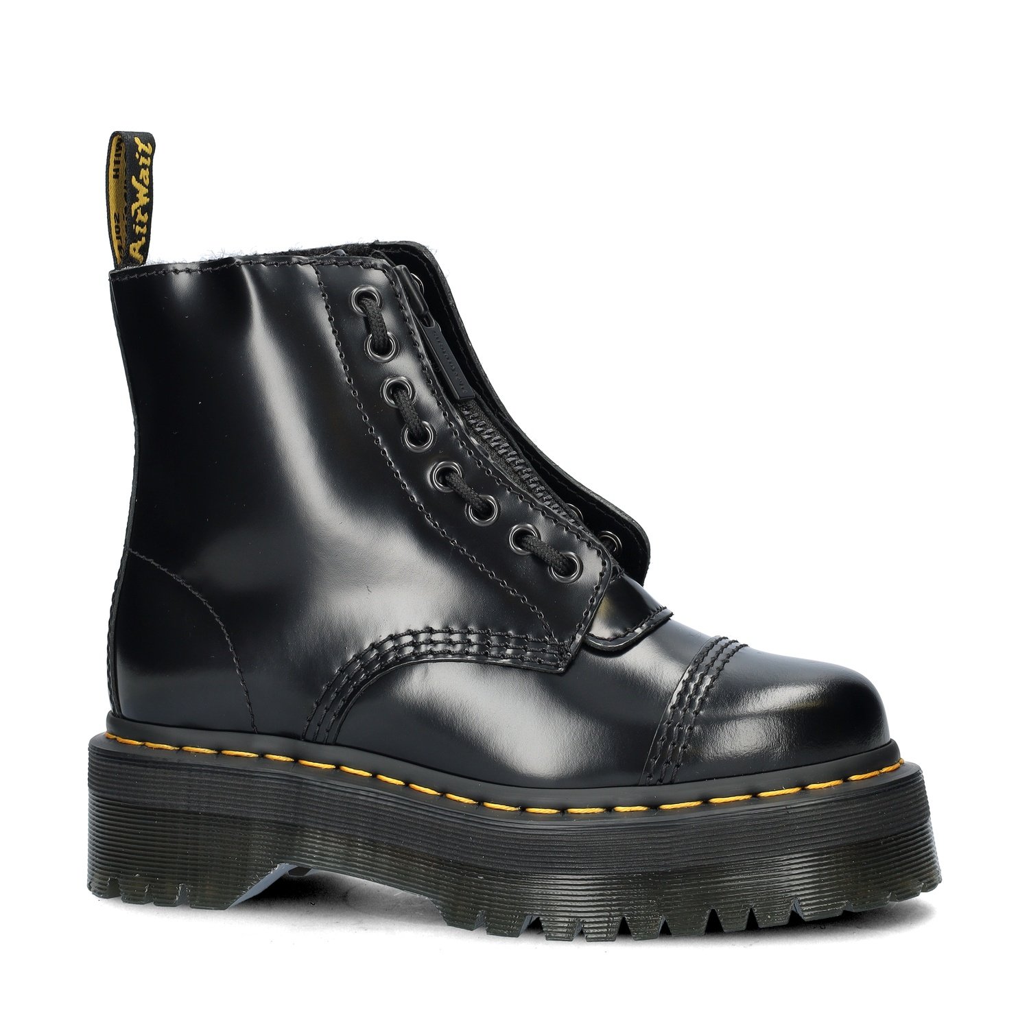 Dr. Martens Sinclair Fur dames veterboot Het bekende model Sinclair van Dr. Martens is er nu in een winterse uitvoering. Met de afneembare rits kun je zelf je ultieme look bepalen. Uitgevoerd in soepel Butteroo leer met een glossy finish voor een opvallende look. Gevoerd met fake fur om je voeten heerlijk warm te houden in de koudere maanden. Voorzien van uitneembaar voetbed met fake fur toplaag voor heerlijk warme voeten. Door het uitneembare voetbed is de boot ook zeer geschikt voor eigen steunzolen. Afgewerkt met de AirWair-zool van Dr. Martens. Door de luchtkamers in de zool ervaar je goede schokabsorptie en worden de voeten minder snel moe.