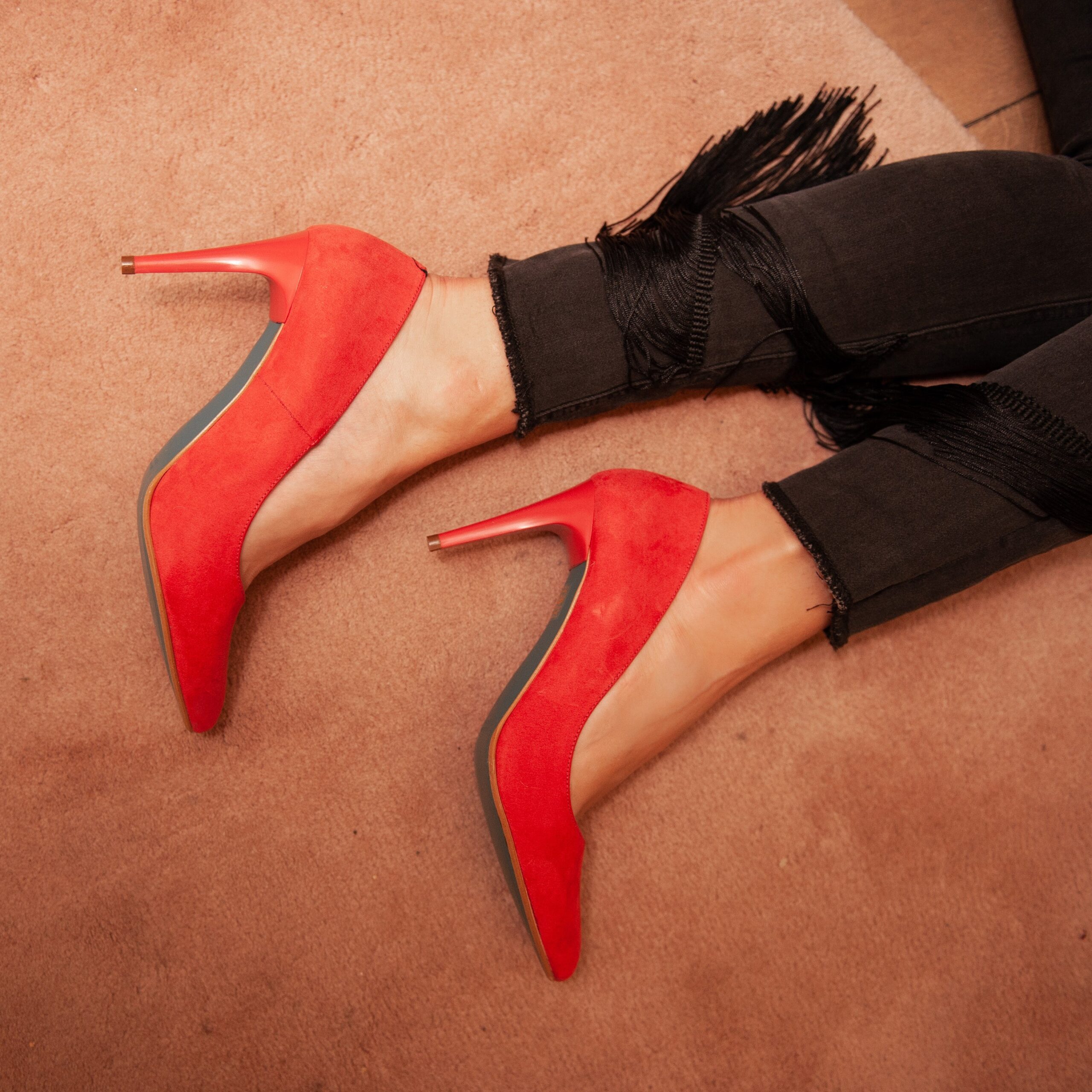 Rode Giulia pumps, gemaakt van imitatiesuède, met een voetbed en voering van leer. De pumps worden handgemaakt in Spanje en zijn leverbaar in 29 verschillende kleuren bij Ziengs! Combineer je zomerse outfit met deze rode pumps voor een kleurenexplosie! De neus van de pumps is spits gevormd en de elegante hak heeft een hoogte van 8 centimeter. Voor extra comfort is de binnenzool voorzien van een kussentje onder de bal van de voet. Het voetbed van de Giulia pumps is niet uitneembaar.