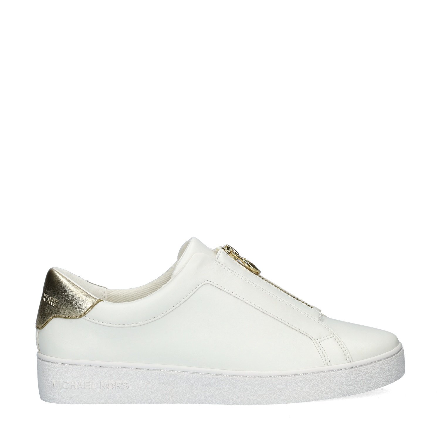Michael Kors Keaton Zip dames sneaker De stijlvolle sneakers van Michael Kors kunnen onder elke casual outfit gedragen worden. De sneakers stralen stijl en vrouwelijkheid uit. Uitgevoerd in imitatileer met een functionele rits over de wreef. Gevoerd met canvas. De hiel heeft een zachte bekleding en lichte wattering voor meer comfort. Voorzien van een foam voetbed met canvas bekleding. Het voetbed biedt een aangename demping tijdens het lopen. Afgewerkt met een rubberen loopzool met uitstekende grip.