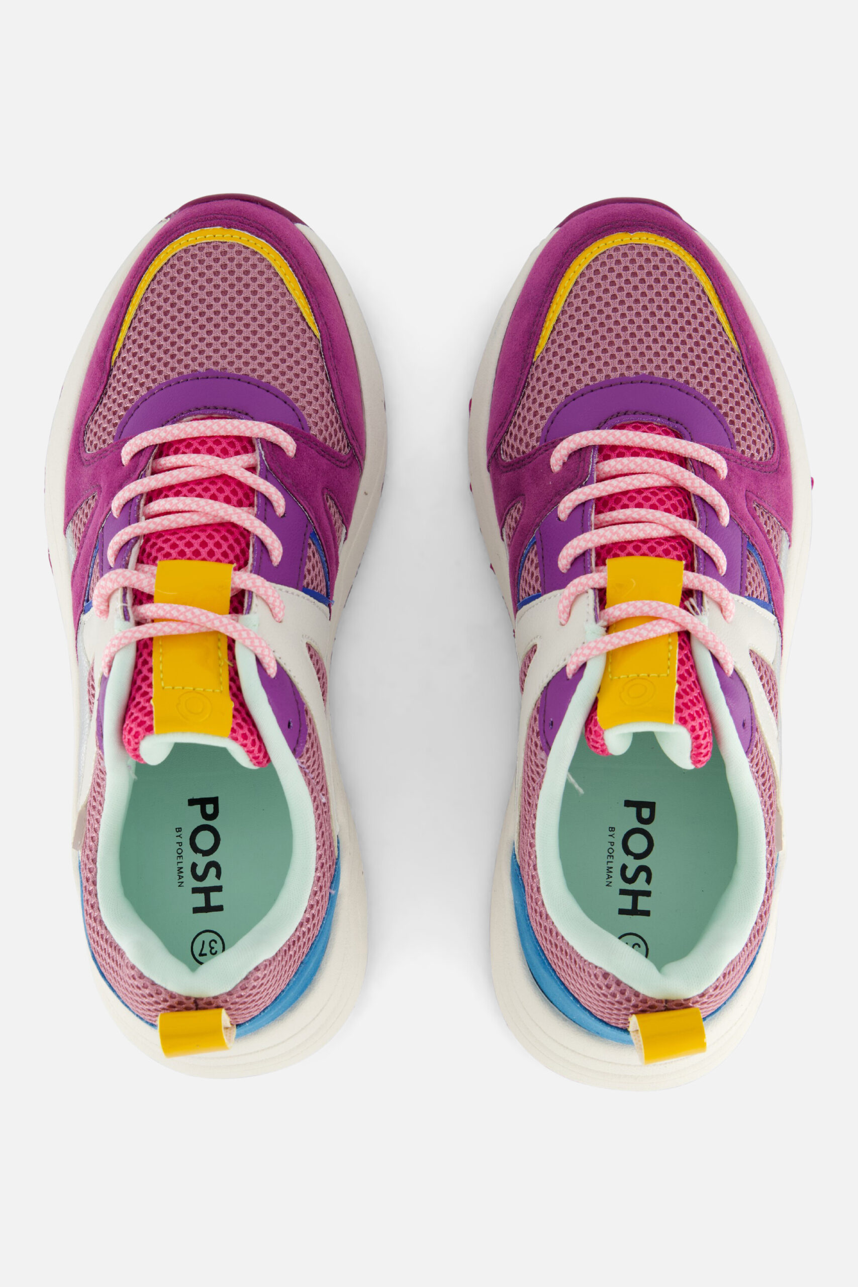 Deze POSH by Poelman sneakers hebben een bovenwerk van textiel en synthetisch materiaal. De sneakers zijn voorzien van een vetersluiting en metallic details. Met hun trendy design en comfort, zijn deze POSH by Poelman sneakers de perfecte toevoeging aan je schoenencollectie!
