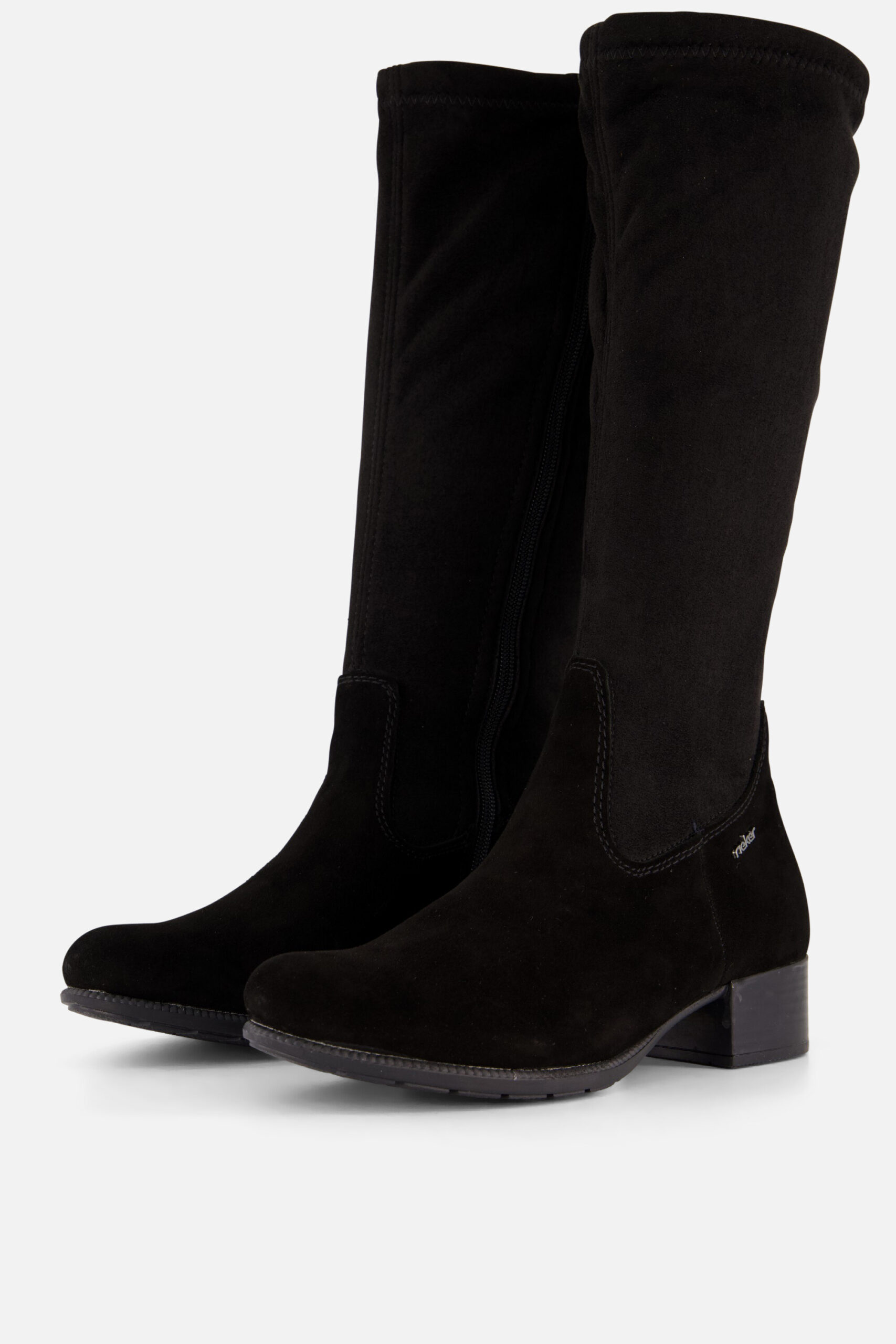 Deze hoge laarzen van Rieker zijn gemaakt van synthetisch materiaal voor een comfortabele pasvorm. Voorzien van een smallere pasvorm (F Leest) en een verharde hiel voor extra stevigheid tijdens het lopen. De voering is gevoerd en de stevige hak heeft een hoogte van 4 centimeter.