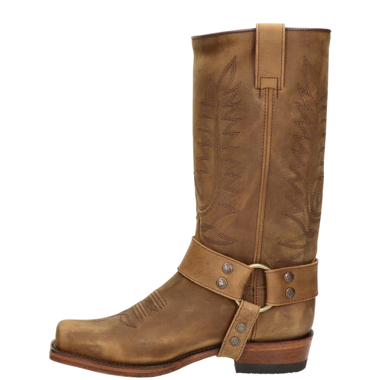 Sendra 17352 pete flex dames cowboylaars Deze laarzen komen het beste tot zijn recht met een vale jeans en een geruit overhemd om zo jouw western look compleet te maken. Uitgevoerd in nubuck leer. Heeft een binnenvoering van leer, het voetbed is deels van leer en syntetisch materiaal. De loopzool is van leer en de hak van rubber. In het begin kan de laars wat stroef en stug zijn. Na ongeveer 5-10 keer dragen zal je merken dat de laars zich naar de voet vormt en het leer soepeler wordt. Om het aan- en uittrekken te vergemakkelijken kun je een plastic zakje om je sok doen. Als je ze eenmaal hebt ingelopen is de pasvorm heel fijn en ben jij helemaal on trend!