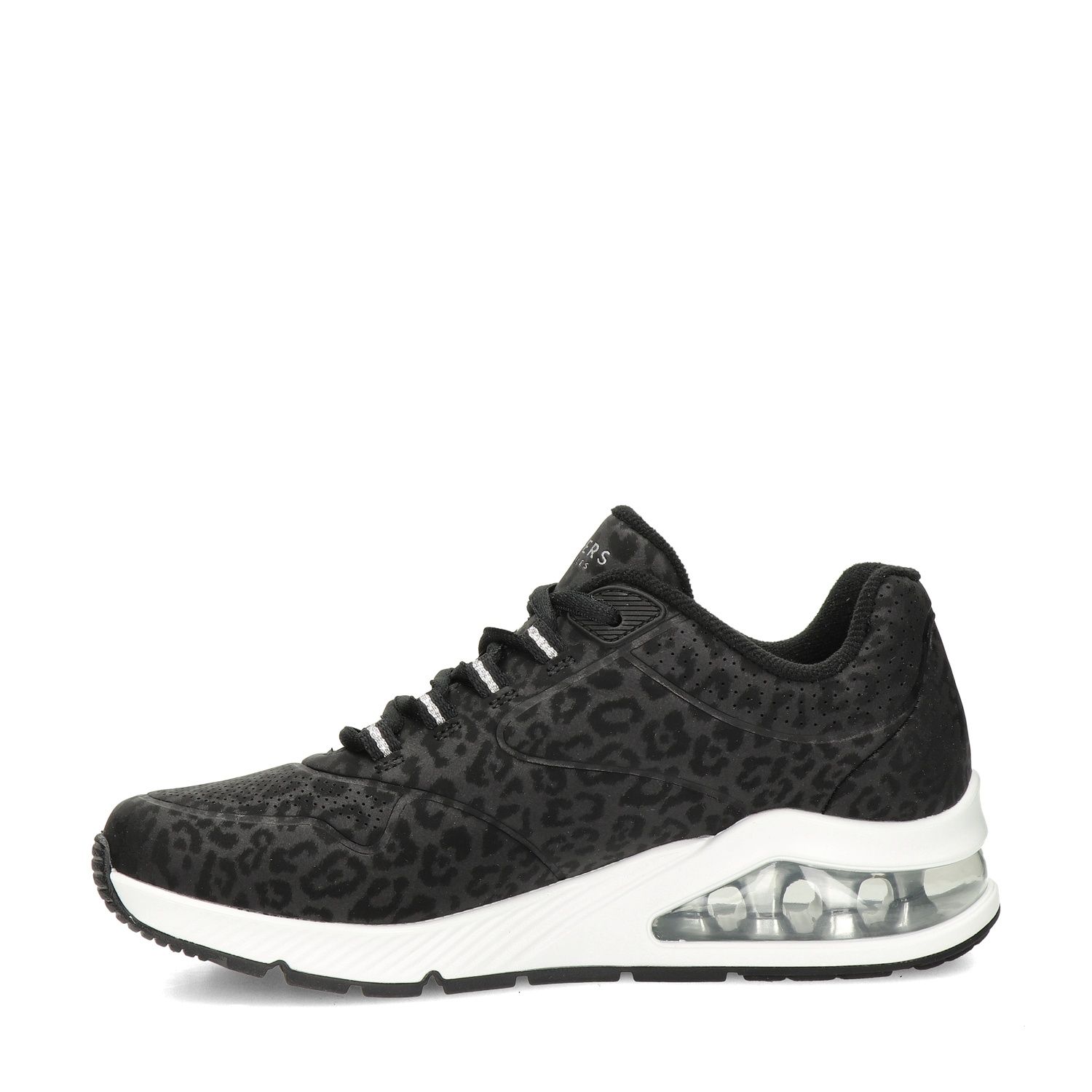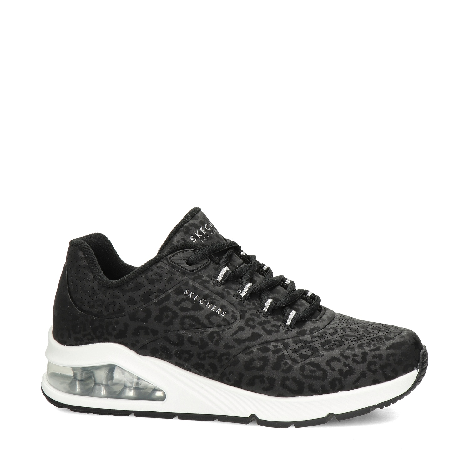 Skechers Uno 2 dames sneaker Deze fijne sportieve sneaker van Skechers is ideaal voor onder iedere outfit. Het bovenwerk van deze sneaker is gemaakt van imitatieleer met een panter-dessin. Gevoerd met zacht textiel en licht gewatteerd voor extra comfort om de hiel. Voorzien van een zacht Air-Cooled Memory foam voetbed voor veel demping en comfort. Ook zorgt de zool voor een goede vocht- en warmteregulatie. De rubberen buitenzool is voorzien van luchtkussens in de zool voor extra veerkracht.