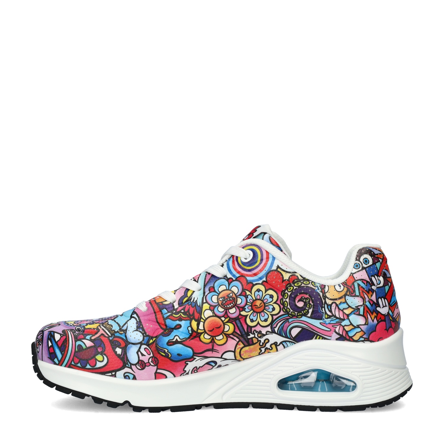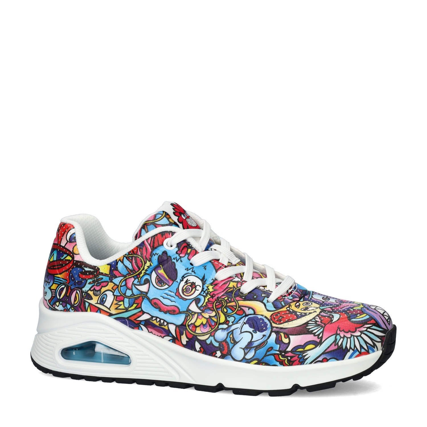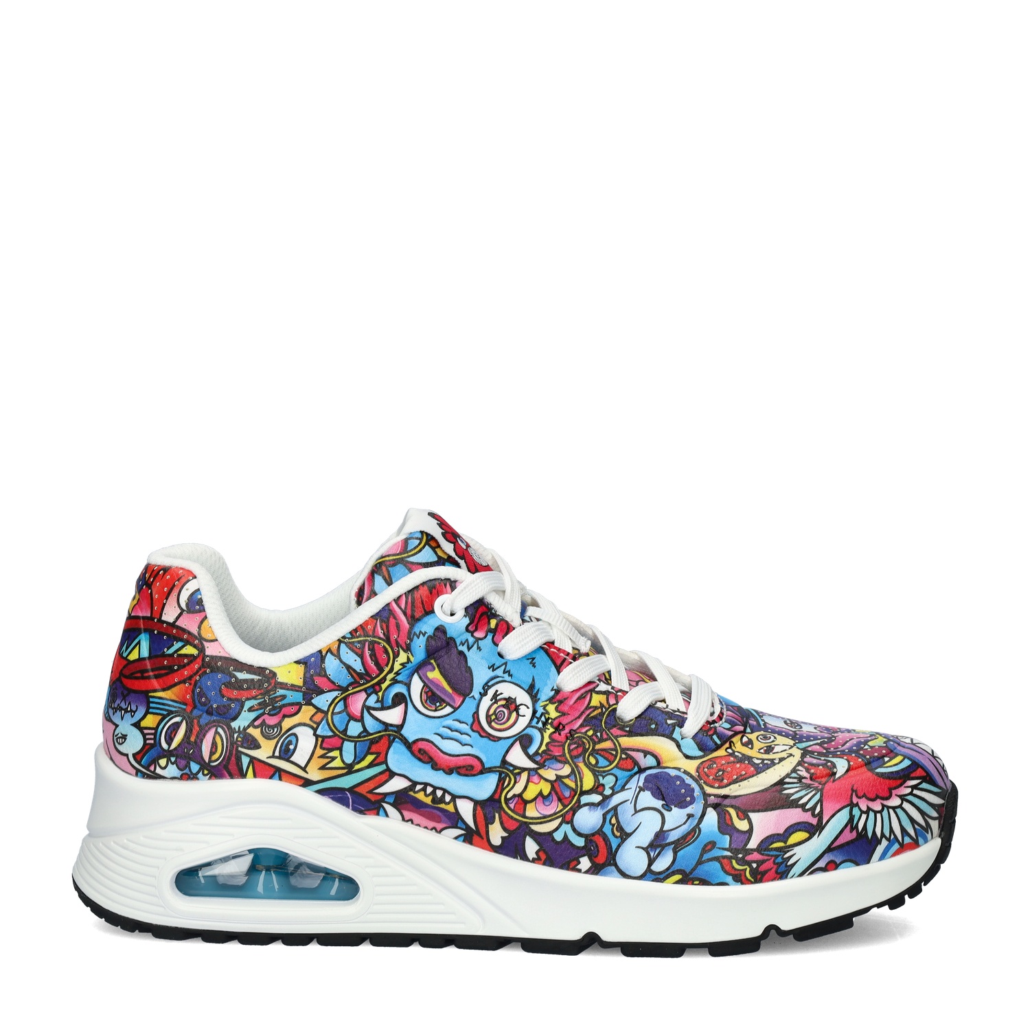 Skechers Uno Colour Doodle dames sneaker Skechers heeft inmiddels al aardig wat benoemenswaardige samenwerkingen gehad. Dit keer met kunstenaar en youtuber Vexx. Met deze kleurige uitvoering val je zeker op. Uitgevoerd in duraleer met Vexx’s kenmerkende doodles. De perforatie op de neus zorgen voor een betere ventilatie. Gevoerd met mesh-textiel. Dit materiaal heeft een goed vocht- en warmteafvoerende werking en houdt de sneaker langer fris. De gewatteerde enkelkraag zorgt voor net dat beetje extra comfort. Voorzien van het Air-Cooled memoryfoam-voetbed. Deze biedt optimale demping en heeft een goede vocht- en warmteregulatie. Afgewerkt met een SkechAir-tussenzool. De luchtkamers in deze zool vangen de schokken op waardoor de voeten minder snel vermoeid raken. De rubberen loopzool is grip- en slijtvast.