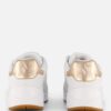 Deze witte Skechers Uno Metallic zijn voorzien van een bovenkant van synthetisch materiaal. De voering bestaat uit textiel, net als de comfortabele binnenzool. De sneakers zijn voorzien van kleine perforaties en verschillende stiksels en gouden details. Dankzij het voetbed met Air Cooled Memory Foam biedt de schoen veel demping. De zool is gemaakt van rubber en heeft een dikte van 2 centimeter. Het voetbed van deze witte Skechers Uno Metallic is niet uitneembaar.