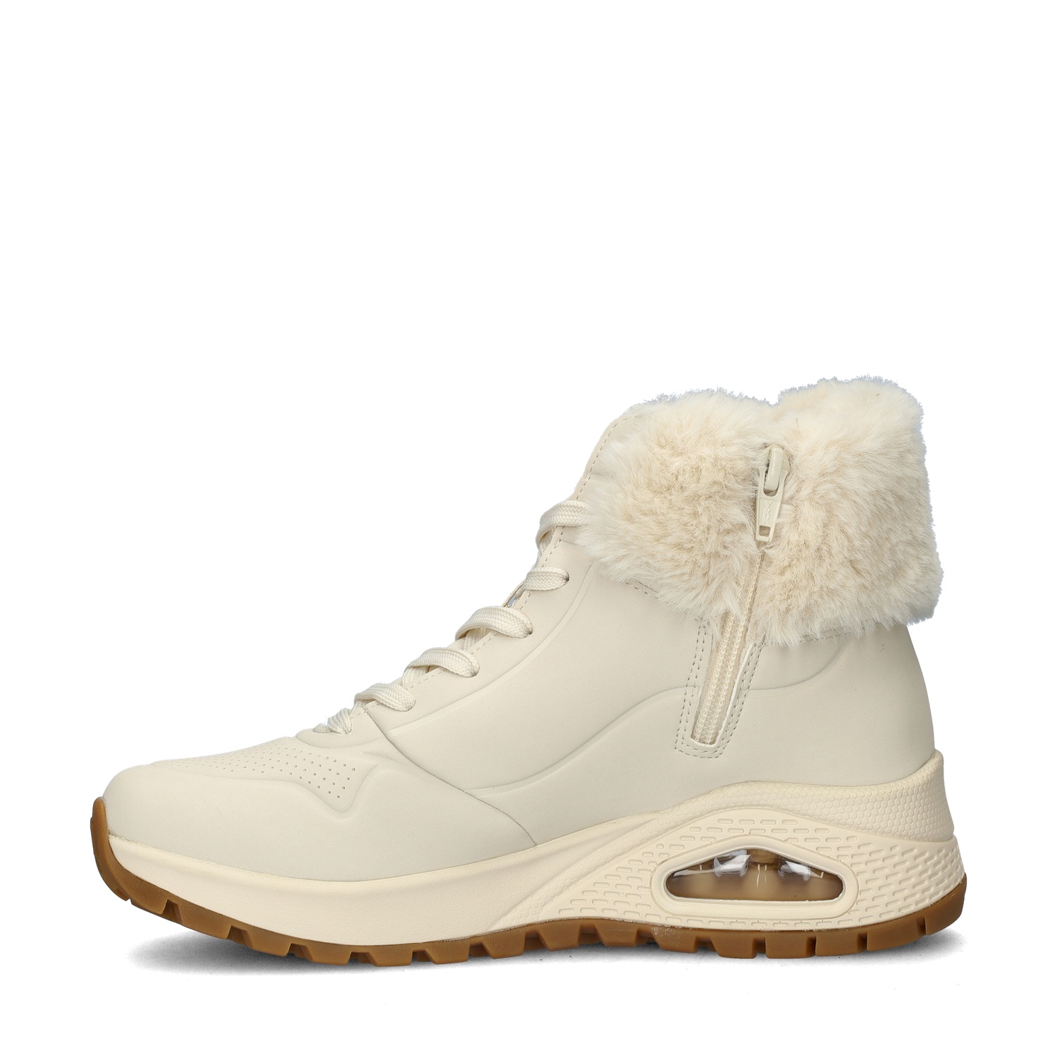 Skechers Uno Rugged dames sneaker Met deze leuke winterse variant van de Uno sneakers kom je met Skechers ook de winter door. Uitgevoerd in duraleer met een leuke winterse gebreide enkelkraag voor extra warmte. Voorzien van een fake fur-voering wat zacht aanvoelt en bovendien je voeten lekker warm houdt in het najaar. Bevat het Air Cooled Memoryfoam- voetbed dat voor optimale demping tijdens het lopen zorgt en de voeten op aangename temperatuur houdt. De Skech-Airbag in de tussenzool vangt de schokken goed op en ontlast de gewrichten tijdens het lopen waardoor vermoeide voeten verledentijd zijn. Voorzien van een rubberen loopzool met een grover profiel dan de sneakervariant. Dit zorgt ervoor dat je ook in de koudere maanden lekker op stap kunt gaan.