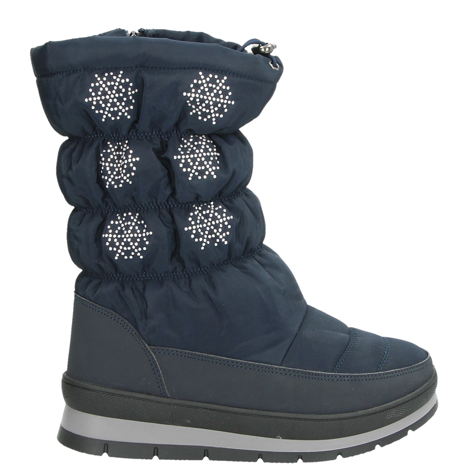 Snow Fun dames snowboot Nooit meer last van koude voeten, met deze warme snowboots. Op de schacht zitten allemaal zilveren steentjes in de vorm van sneeuwvlokjes. De snowboot is is warm gevoerd met fake-fur. Het voetbed is uitneembaar. De stevige rubberen zool zorgt voor een goede grip. Let op, deze snowboot valt erg klein! Wij raden je aan om 1 a 2 maten groter te bestellen.