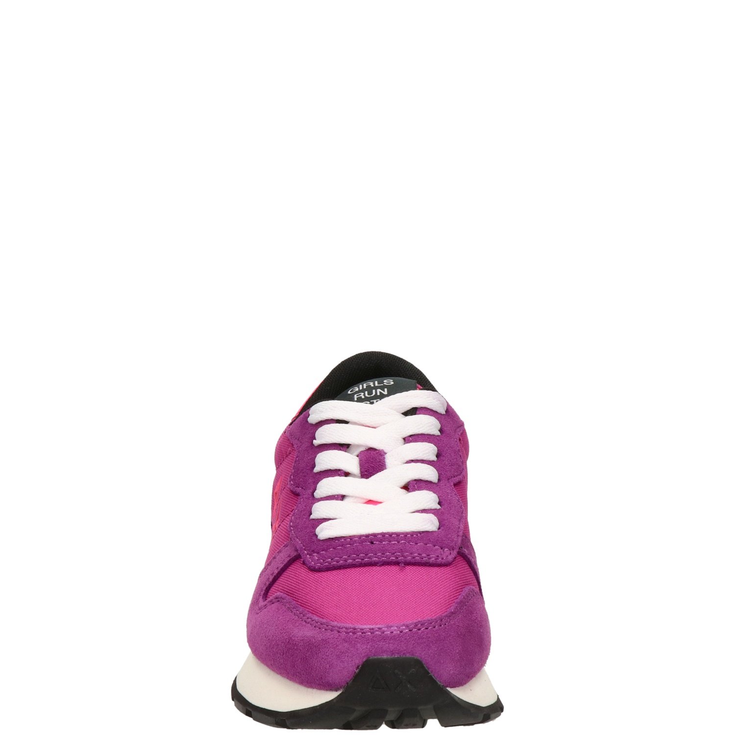 Sun 68 Ally Solid dames sneaker Deze sneaker van Italiaans modemerk Sun68 is opvallend door het casual maar sportieve design. Het bovenwerk is uitgevoerd in stevig textiel en heeft een afwerking van suède panelen. Gevoerd met lichtgewicht en ademend textiel voor een comfortabele pasvorm. Het uitneembare textiele voetbed zorgt voor voldoende demping. De rubberen loopzool heeft dankzij het noppenprofiel voldoende grip.