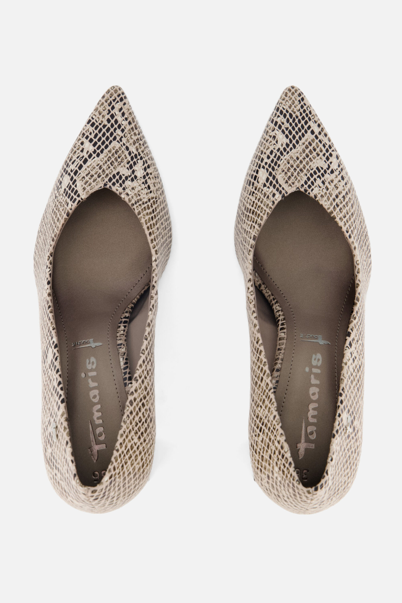 Deze pumps van Tamaris zijn gemaakt van synthetisch materiaal en textiel, voorzien van een stijlvolle slangenprint. Dankzij de Touch-it binnenzool loop je extra comfortabel, terwijl de Anti-Shokk technologie zorgt voor optimale demping bij elke stap. De rubberen antislipzool biedt extra grip en stabiliteit. De hak heeft een hoogte van 7 centimeter.