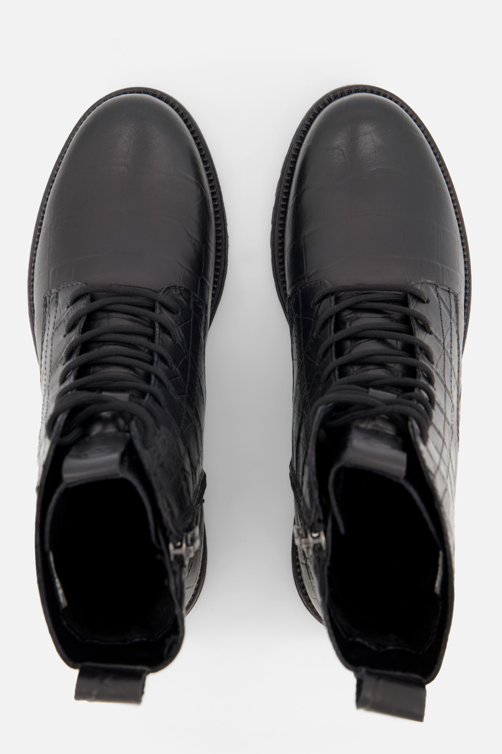 Trendy veterboots van Tamaris in zwart croco-look. Zowel de binnen- als buitenkant zijn van leer, wat zorgt voor een luxe uitstraling en hoog draagcomfort. Dankzij de combinatie van veters en een praktische rits zijn ze makkelijk aan en uit te trekken.