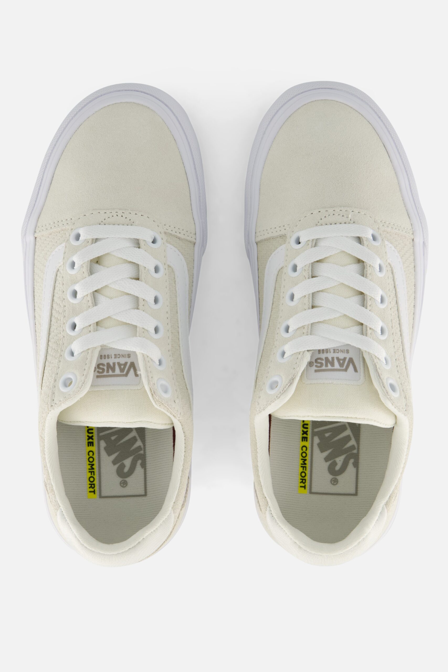 Deze Vans Ward Deluxe sneakers in de kleur beige zijn gemaakt van textiel en geïnspireerd op de klassieke Old Skool sneakers van Vans. De Old Skool heeft een bovenwerk van duurzaam suède en canvas. De gladde voering en dempende binnenzool zijn ook van textiel. De zool is gemaakt van rubber en heeft een dikte van 2 centimeter.